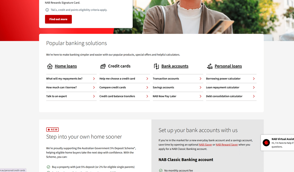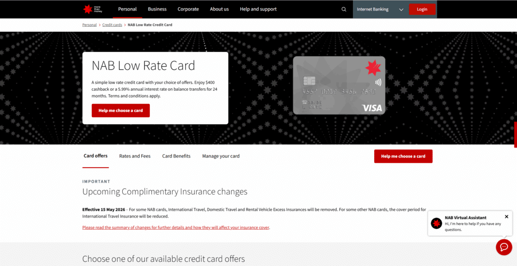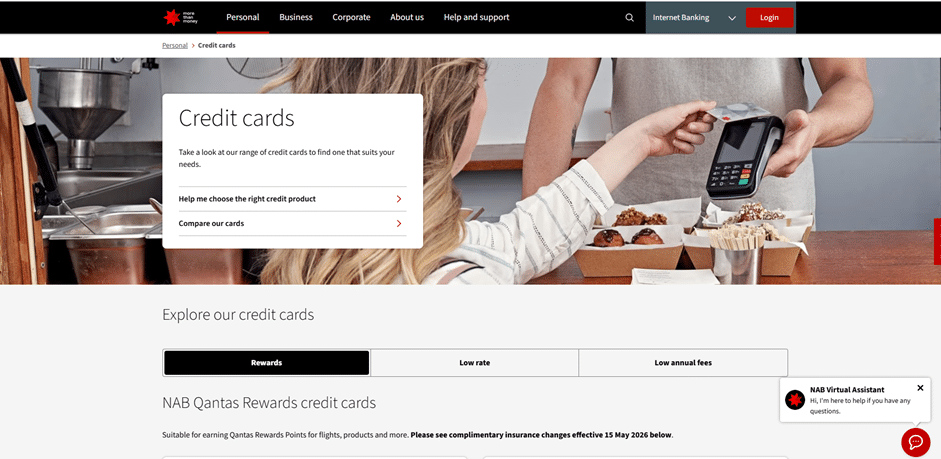 On the credit cards page, you’ll find several NAB products, including: