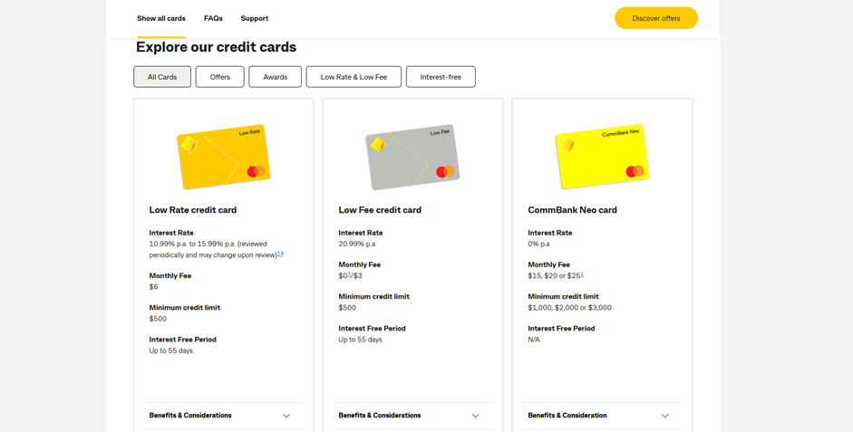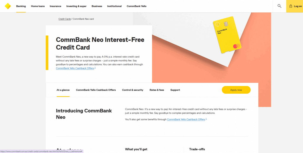 - Visit the official CommBank website and navigate to the Credit Cards → Neo section.
