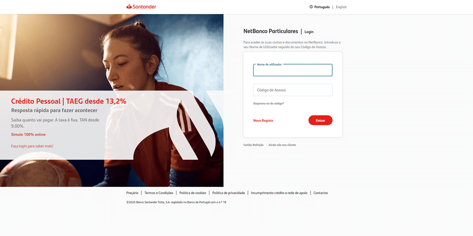 - Acesso à Plataforma: Inicie sessão no NetBanco ou na App Santander.