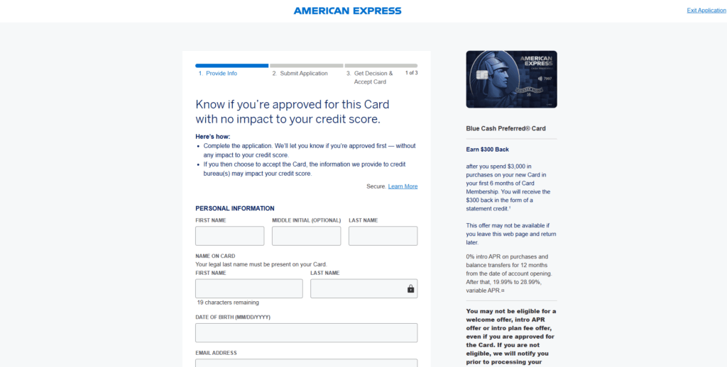 After clicking “Apply Now,” you’ll be redirected to the American Express application form.